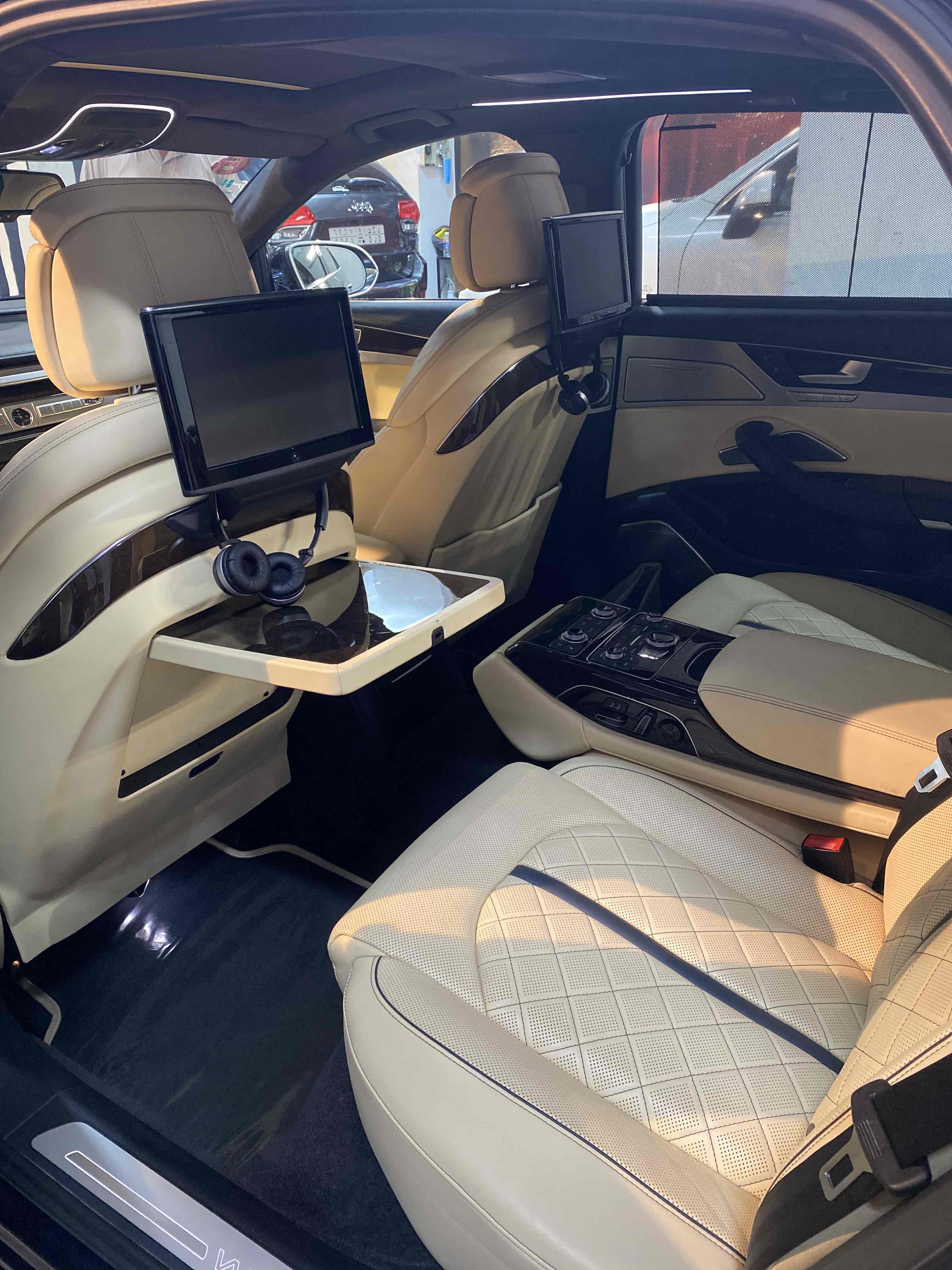 - الماركة: أودي - النوع: A8 Long - حجم المحرك: 12 سلندر ويمكن تغيره إلى 4 سلندر - الموديل: 2014 - الوارد: سعودي(سماكو) - اللون: كحلي - حالة السيارة : مستعملة مالك أول - القير: اوتوماتيك - الوقود : بنزين - نوع الدفع: رباعي - العداد :129 ألف كم - المنطقة: الرياض مواصفات السيارة حصرية Exclusive تشغيل ذكي للسيارة إنذار ضد السرقة خاصية البصمة فرامل مانعة للانزلاق ABS خيار توفير الوقود Eco أو بتغيير السلندر إلى 4 خاصية تعديل ارتفاع السيارة حساس ضغط الكفرات بريك وقوف الكتروني EPB إطارات جنوط 21 خاصية الثبات الالكترونى DSC خاصية تباعد المركبات مثبت سرعة نظام مساعد السائق حساسات أمامية حساسات خلفية تحكم دريكسون كاميرات أمامية وخلفية مساعد الوقوف Guide lines مع التفاف حاد للمواقف الضيقة نظام ملاحة GPS مزيل ضباب مصابيح ضباب مصابيح ليد إنارة ليد داخلية مرايات بانارة للمقاعد الخلفية مرايات الجانبية تحكم كهربائى زجاج تحكم كهربائي وسائد هوائية أحزمة أمان سنتر لوك مقاعد جلد مزخرفة بلونين خياطة يدوية الابواب والطبلون والدركسون تطعيم خشب بلوتوث نظام صوتي عالي الدقة Bang&Olufsen شاشات خلفية مع سماعات لكل مقعد تبريد لجميع المقاعد الأمامية والخلفية تدفئة لجميع المقاعد الأمامية والخلفية مساج بعدة خيارة لجميع المقاعد الأمامية والخلفية ذاكرة تخزين اعدادات لجميع المقاعد والمقاعد الأمامية ذاكرة اضافية لشخصين مكيف تحكم فردي مستقل لكل مقعد طاولة عمل خلف السائق قابلة للطي مساند قدم قابلة للتحريك والتعديل ثلاجة أبواب شفط التواصل للجادين عن طريق الواتس اب