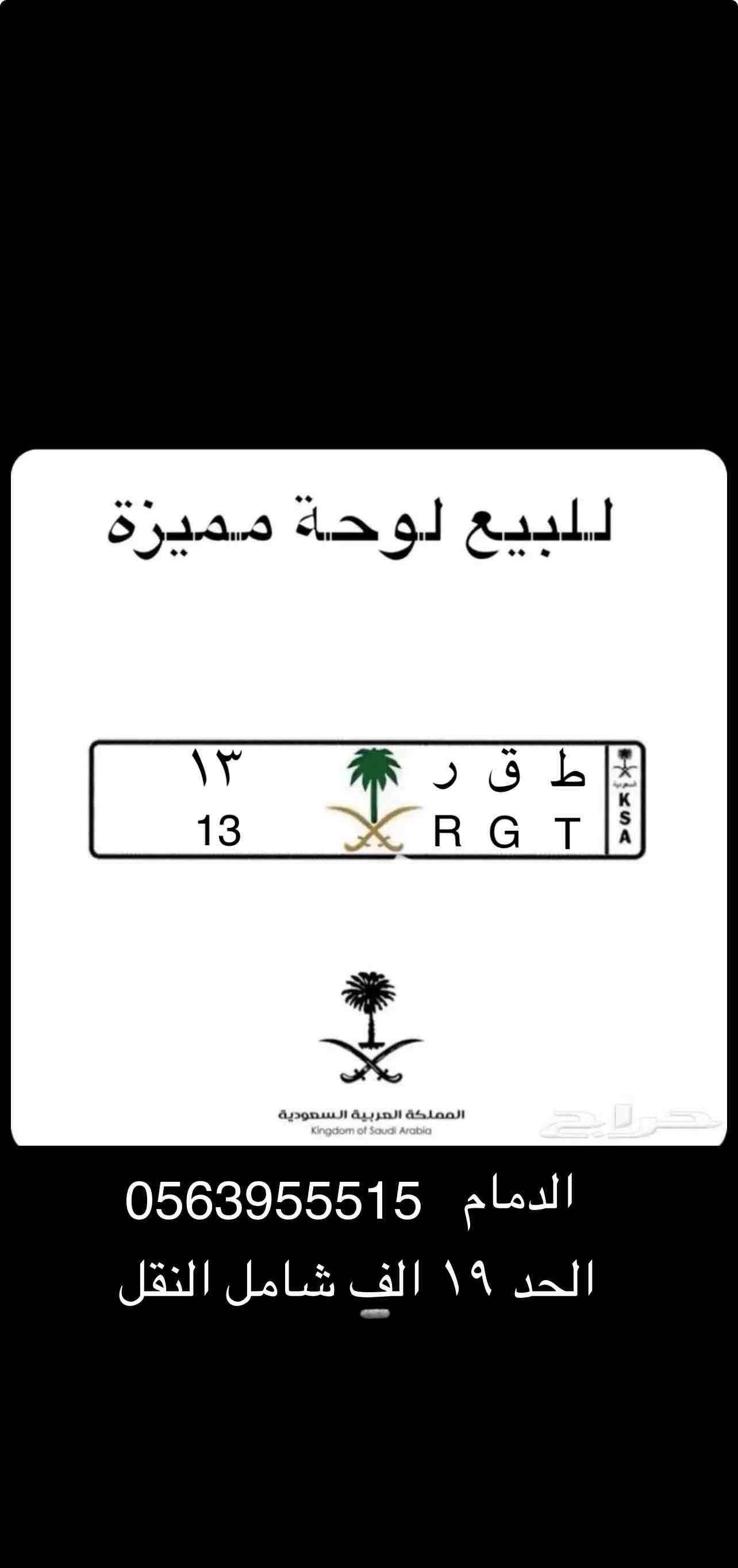 لوحه مميزه ط ق ر 13 الحد 19 شامل النقل والشحن اذا من خارج الدمام